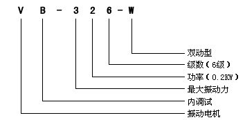 ●概述: VB系列振動電機(jī)是動力源和電力源合為一體得通用型,是各類振動機(jī)械得配套激振源,如振動給料機(jī)、振動輸送機(jī)、振動放礦機(jī)、振動落沙機(jī)、振動篩分機(jī)、料倉得振動防閉塞裝置等。廣泛應(yīng)用于電力、建材、煤炭、礦山、冶金、化工、輕工、鑄造等行業(yè)。 ●特點(diǎn):1、激振力與出力配合適當(dāng),機(jī)體質(zhì)量輕、體積小。 ●使用條件: 環(huán)境溫度: 不超過40℃ ●型號說明: |