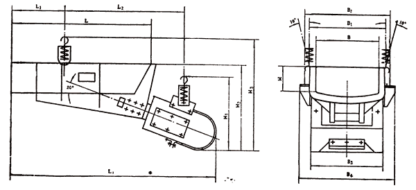 電磁振動(dòng)給料機(jī)是一種新型的給料設(shè)備,它和其它給料設(shè)備相比具有如下特點(diǎn): (1)體積小,重量輕,結(jié)構(gòu)簡單,安裝方便,無轉(zhuǎn)動(dòng)部件不需潤滑,維護(hù)方便,運(yùn)行費(fèi)用底。 (2)電磁振動(dòng)給料機(jī)由于運(yùn)用了機(jī)械振動(dòng)學(xué)的共振原理,雙質(zhì)體在底臨界近共振狀態(tài)下工作,因而消耗電能少。 (3)由于可以瞬時(shí)的改變和啟閉料流,所以給料量有較高的精度,并可以實(shí)現(xiàn)生產(chǎn)流程地集中控制和自動(dòng)控制。 (4)本系列電振動(dòng)的控制設(shè)備采用了可控硅半波振流線路,因此在使用過程中可以通過調(diào)節(jié)可控硅開放角的辦法方便地?zé)o級調(diào)節(jié)給料量。 (5)由于給料槽中的物體在給料過程中連續(xù)的被拋起,并按拋物線的軌跡向前進(jìn)行跳躍運(yùn)動(dòng),因此給料槽的磨損較小。 (6)本系列電振機(jī)不適用300℃以上的灼熱物料和具有防爆要求的場合